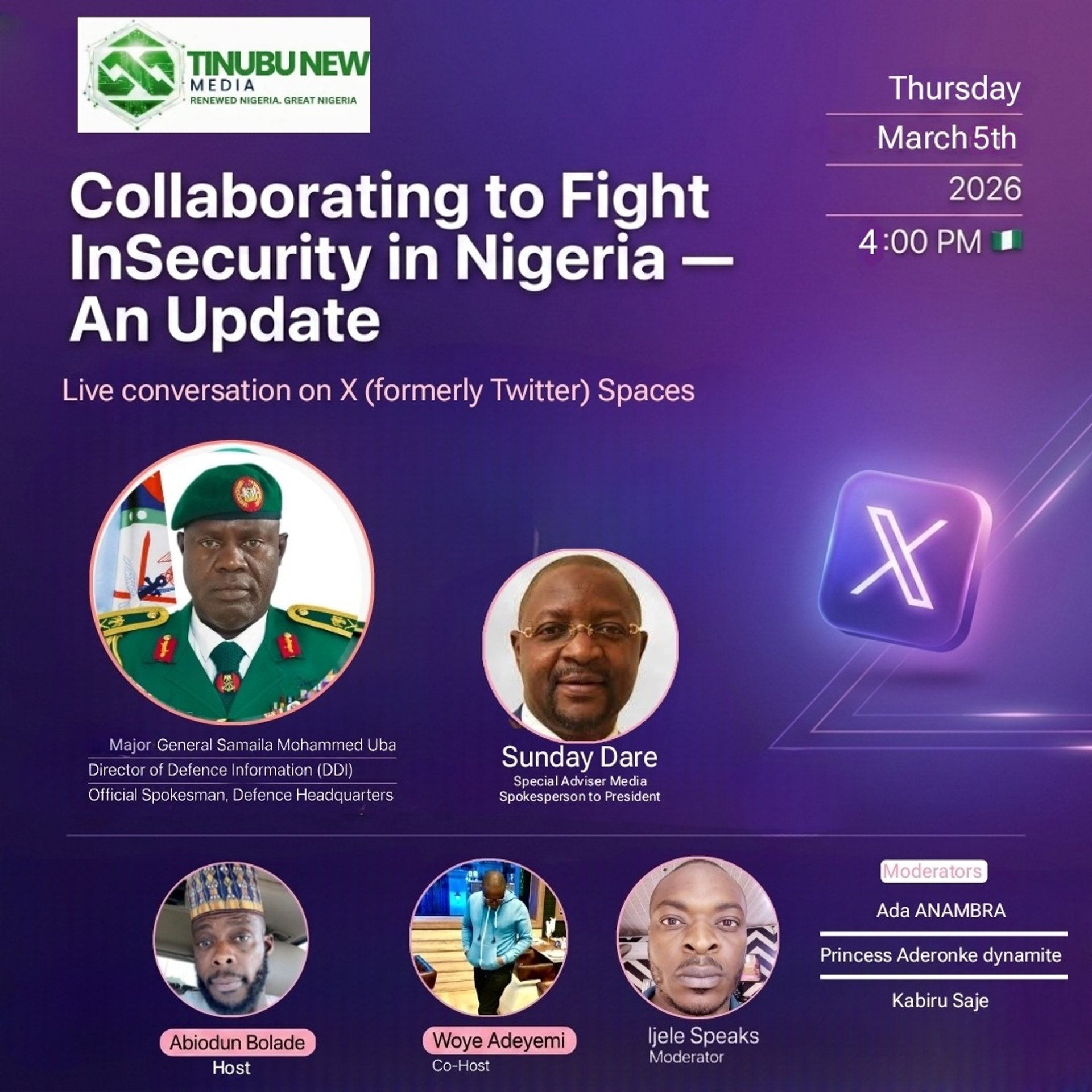 Twitter space hosted by Tinubu New Media, with Major General Samaila Mohammed Uba (Official Spokesman, Defence Headquarters